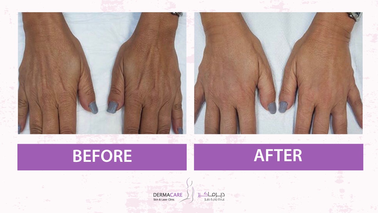 As we age, our hands lose elasticity and the subcutaneous tissue starts to atrophy. This makes the veins, tendons and the bony structures in our hands more apparent. Treatment includes restoration of the lost volume using dermal fillers giving a more youthful look to match our youthful faces and necks.