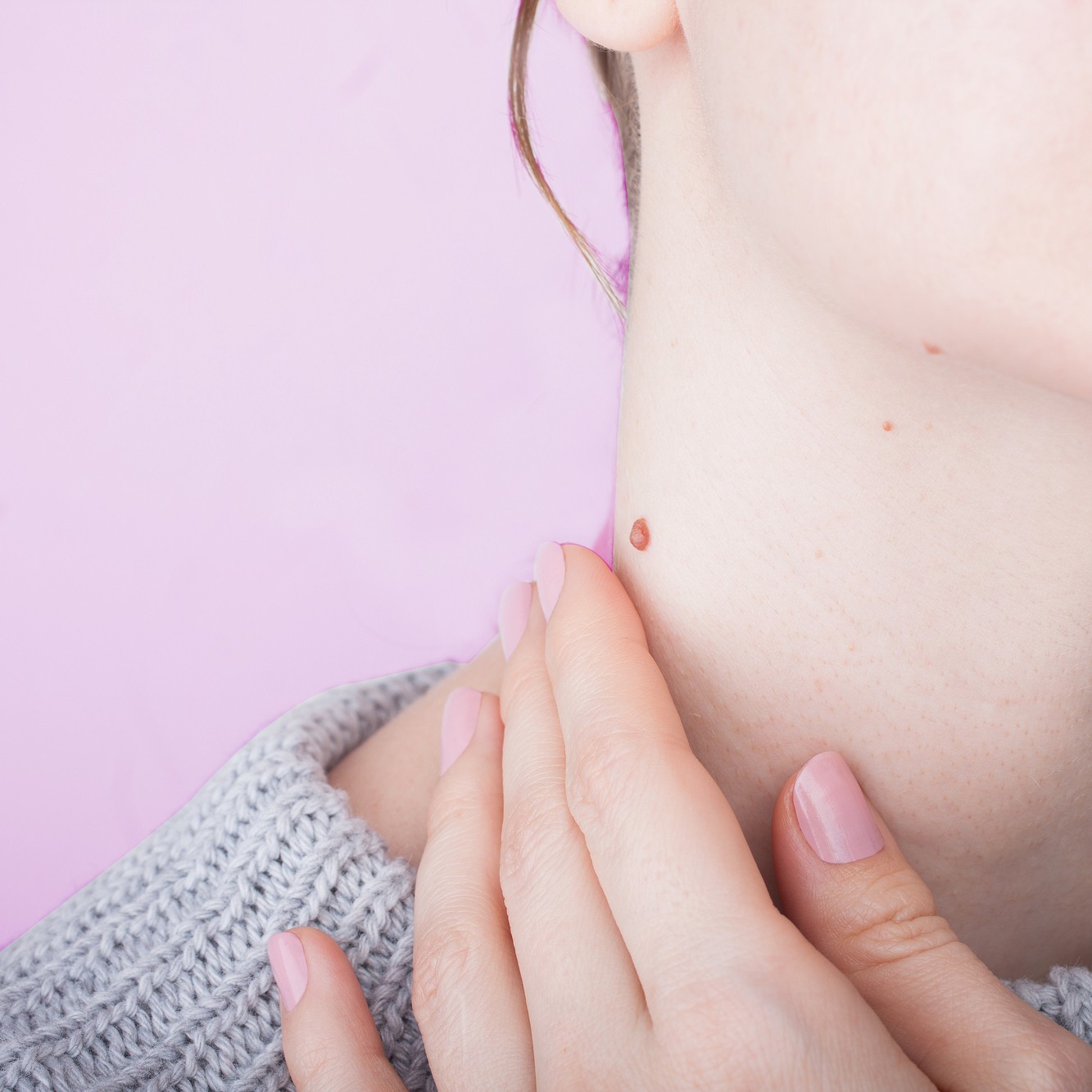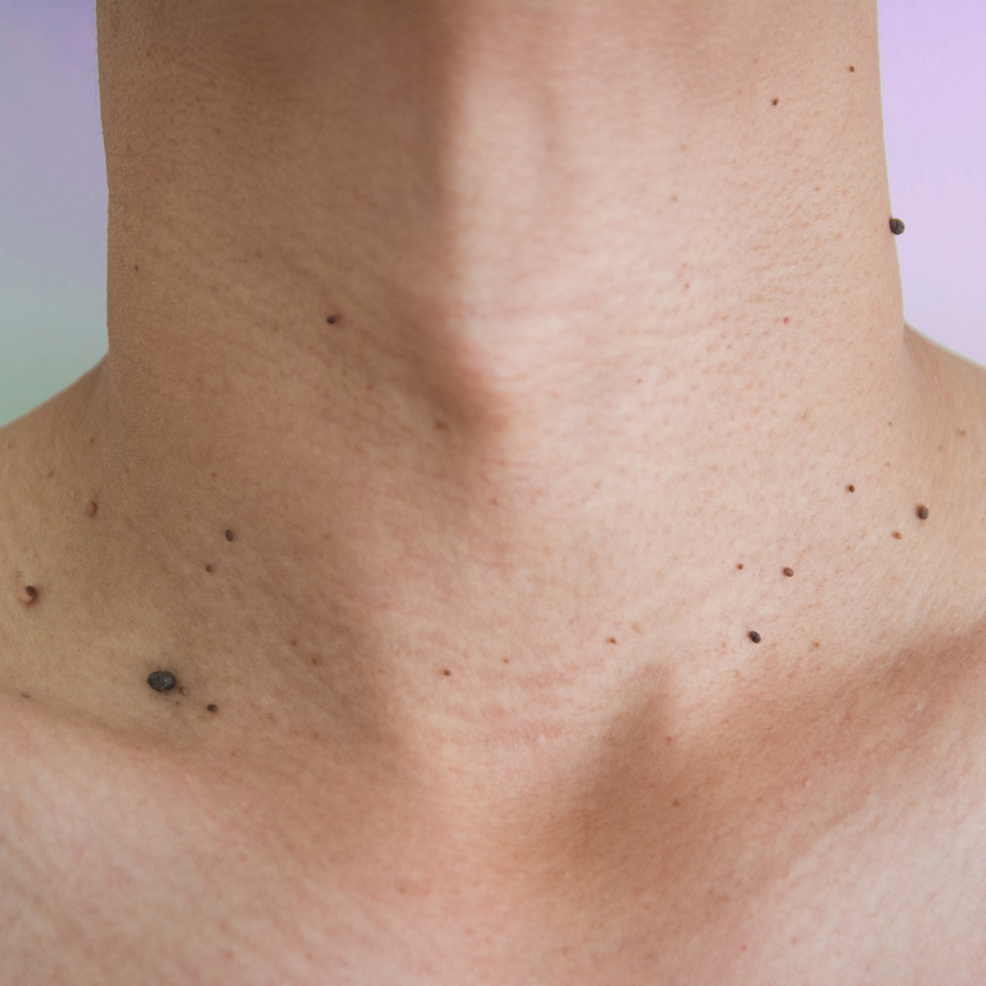 Skin tags usually occur when clusters of collagen and blood vessels become trapped inside thicker areas of skin. They can also be caused when skin rubs against another area of skin as a result of continuous friction (for instance in folds of the neck and armpits, but can also occur anywhere on the body). This condition is linked to obesity and pregnancy, and is usually familial.