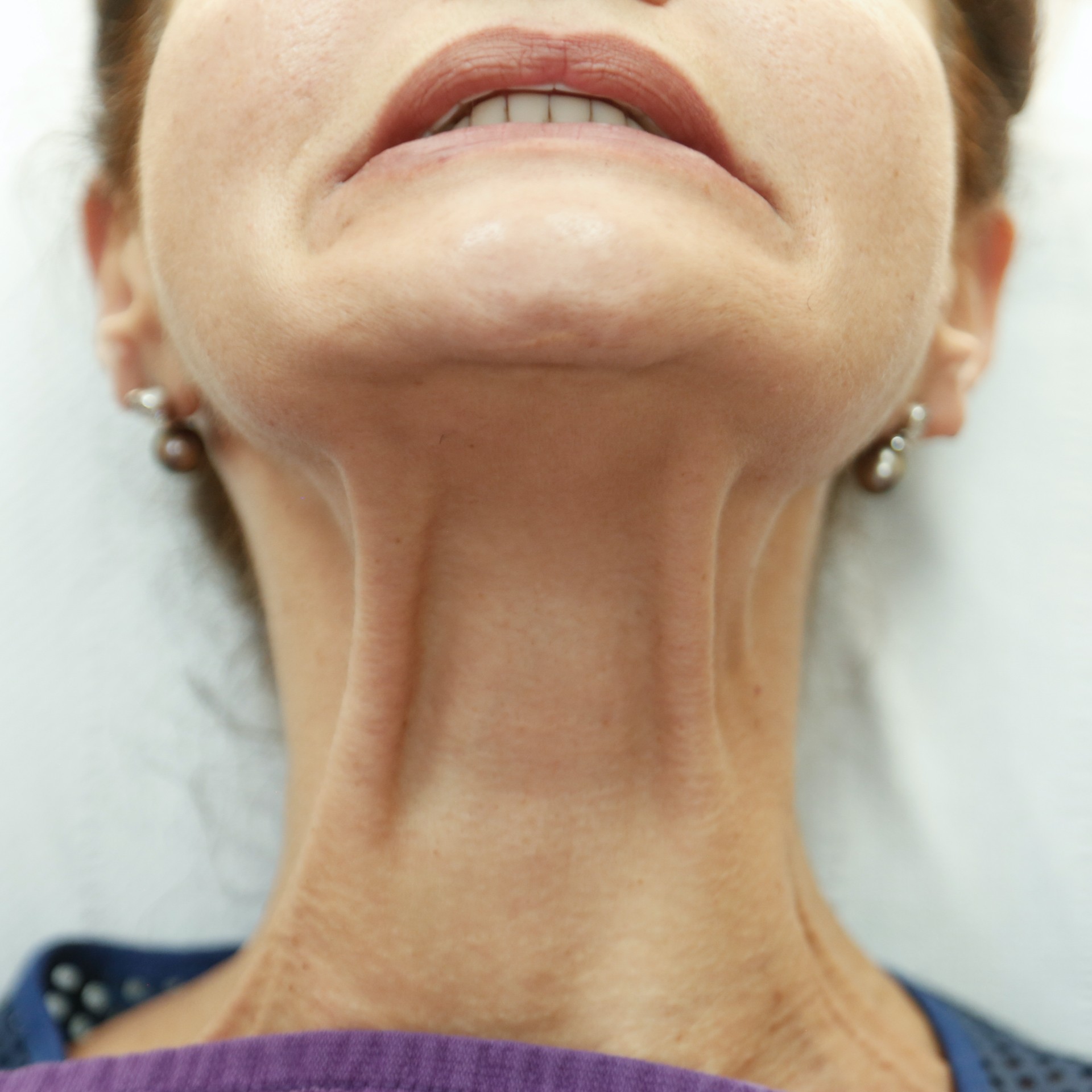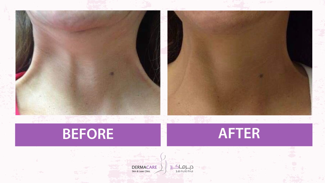 Vertical neck lines, medically known as platysmal bands, are usually caused by hyperactivity of the platysma muscle of the neck as well as loss of elasticity and tissue support with aging. They are treated by injecting botulinum toxin (known as Botox®), which target the muscle fibres and tightens the neck.