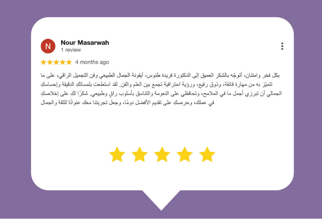 كوني خبير تجميل وأسعى دوما نحو الأفضل فيما يتعلق بالصحة والجمال، خياري الأول والوحيد هو الدكتورة فريدا طنوس