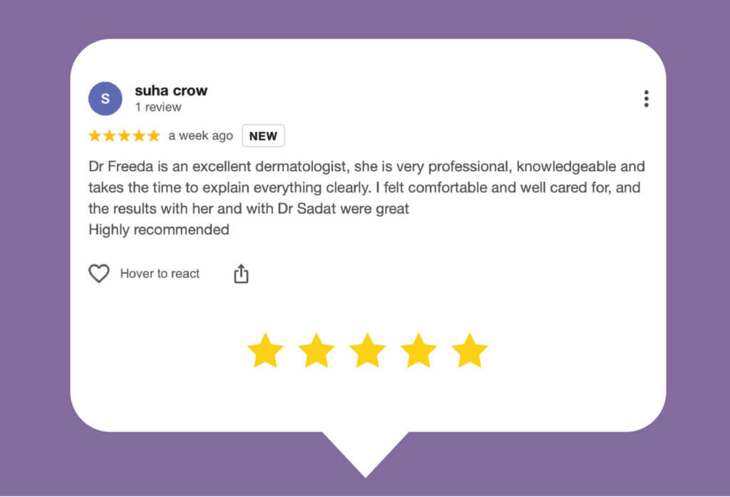 I feel safe in the hands of a qualified doctor and absolutely love my refreshed skin, I'll definitely be back