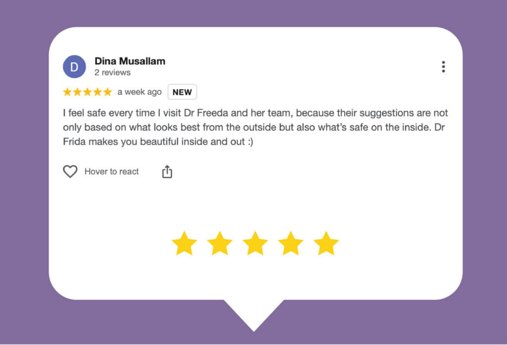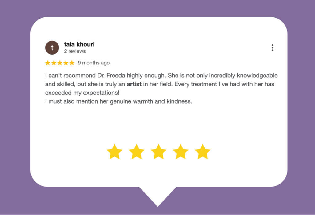 When it comes to my face and appearance, I whole-heartedly trust Dr. Freeda and value her input both on my face and my life